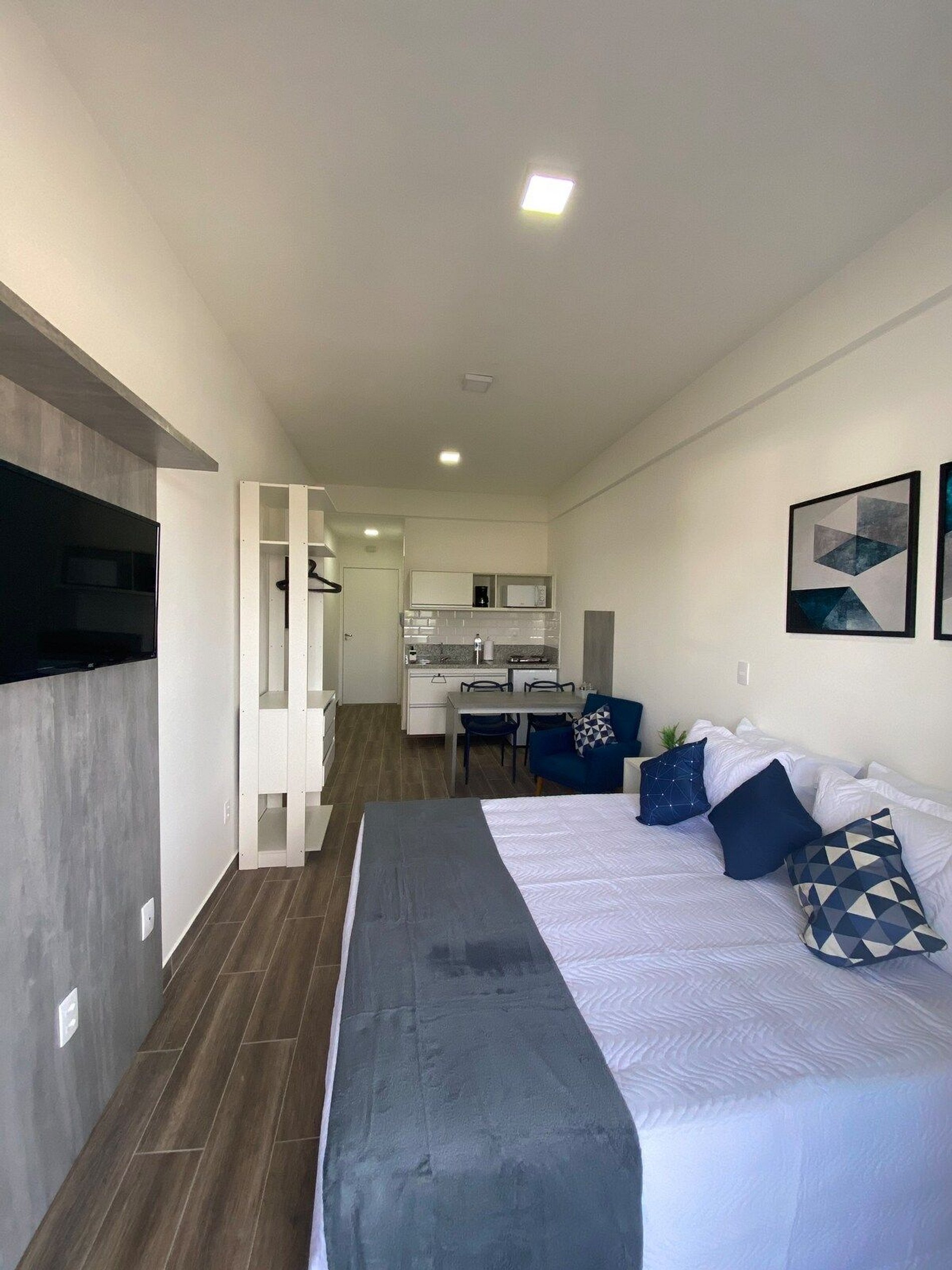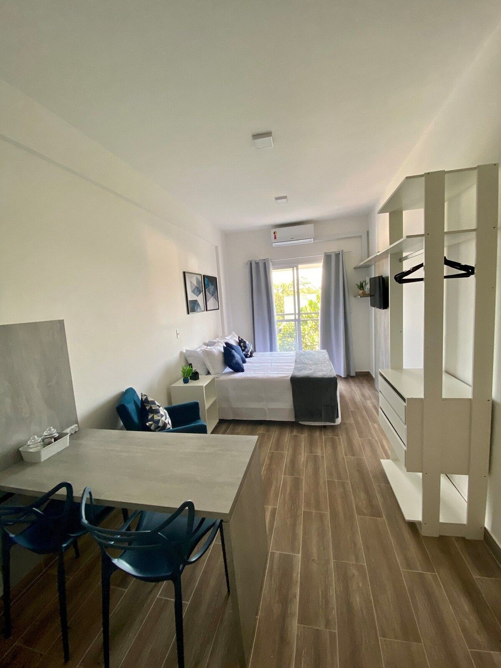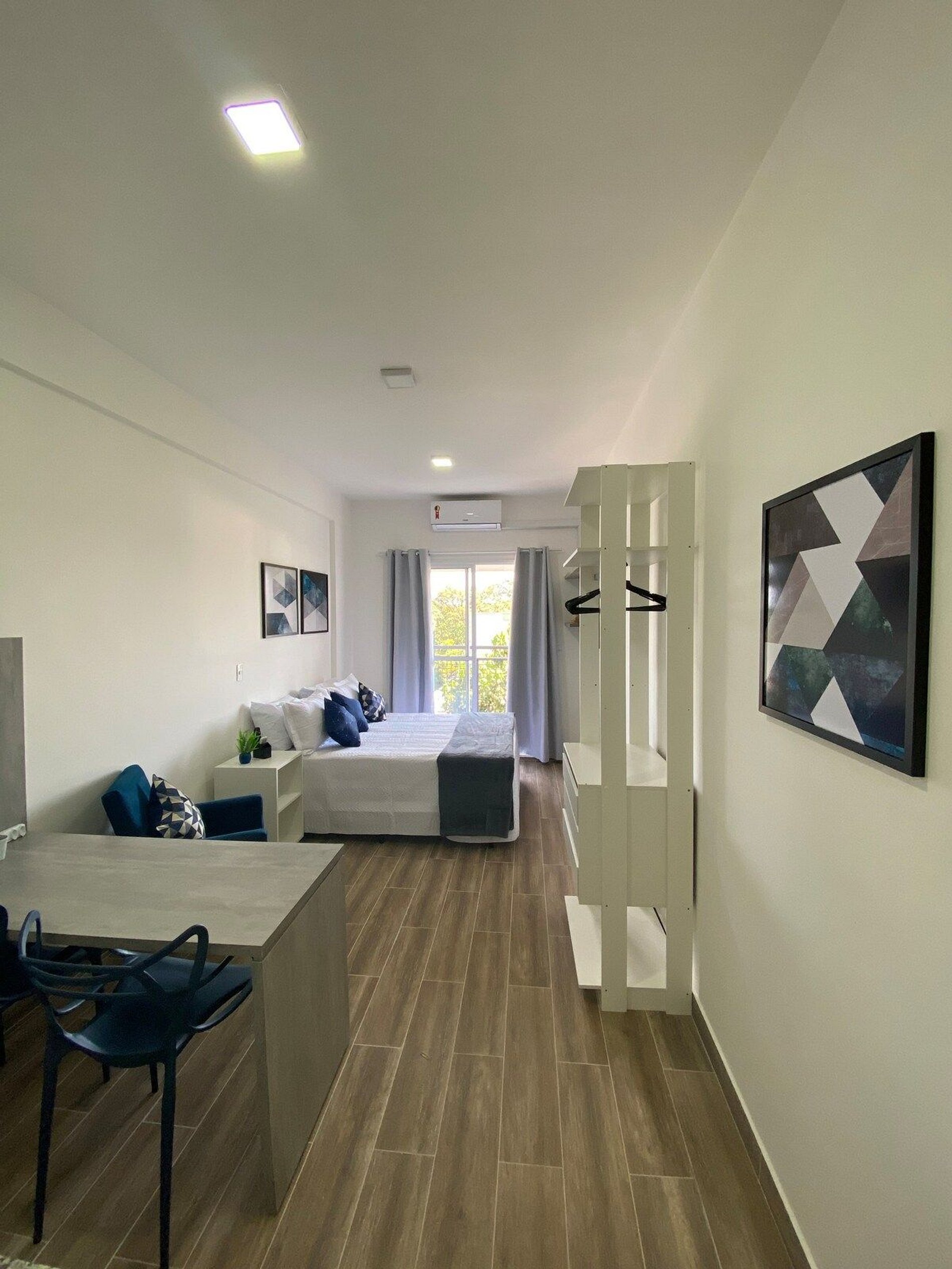 Tudo novinho, decorado com muito carinho e pensado no conforto e praticidade de nossos hóspedes. - Ar condicionado, cortina Black out - TV Smart e wi-fi de alta velocidade - Cama Box – Configurado com 2 camas de solteiro ou uma casal quen e um beliche para mais 2 pessoas– Mini closet