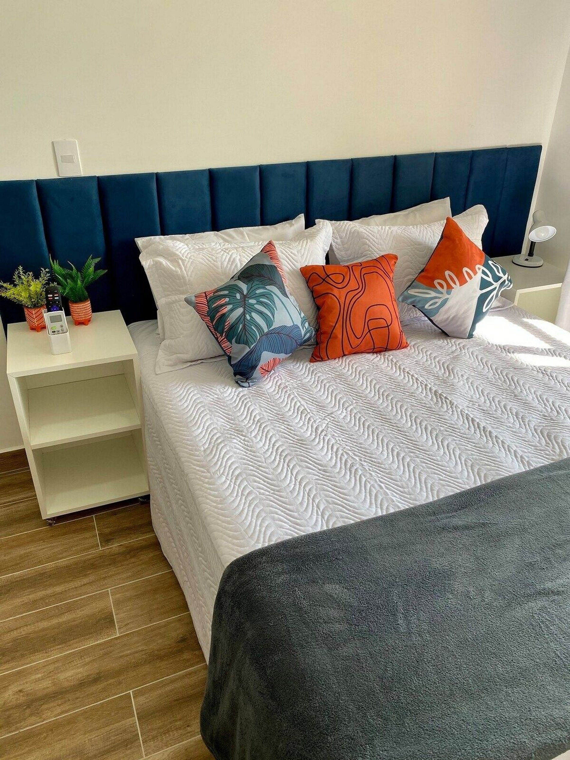 Tudo novinho, decorado com muito carinho e pensado no conforto e praticidade de nossos hóspedes. - Ar condicionado, cortina Black out - TV Smart e wi-fi de alta velocidade - Cama Box – Configurado com 2 camas de solteiro ou uma casal quen – loset ou Guarda roupas.Caso venha com crianças, podemos providenciar cama extra ou Kit bebê - berço, banheira e cadeirão* Enxoval Completo: roupa cama (lençóis, travesseiros e cobertas) e banho (jogo de toalhas) Banheiro espaçoso, chuveiro com água de alta pressão de aquecimento central - (ferro de passar e secador de cabelo) Cozinha compacta- frigobar ou geladeira, cooktop, microondas, panelas, pratos, copos, xícaras e talheres. (Forno elétrico, Liquidificador e Toxtex podem ser solicitados)*Espaço confortável para Home-office (cadeira ergonômica)*.